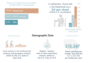 This month, the National Center on Education and the Economy (NCEE) is focusing on the Dutch education system. In one post, Jennifer Craw shares statistics that show the Dutch system is one of the top performing education systems worldwide. For example, Dutch 15-year-olds are a full year ahead of their U.S. counterparts in mathematics. In a recent blog post, Marc Tucker points to the country’s powerful math curriculum called Realistic Mathematics.