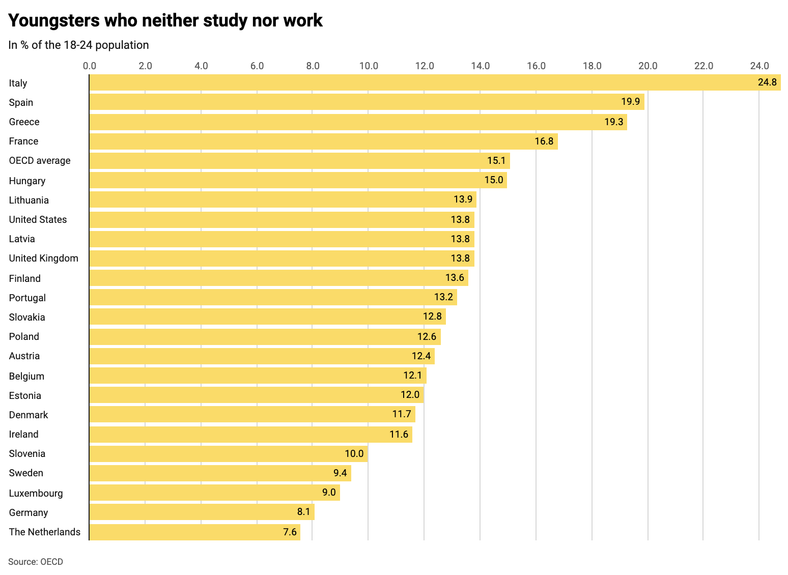 The unemployment rate among young adults in Latvia is higher than the OECD average, Diena