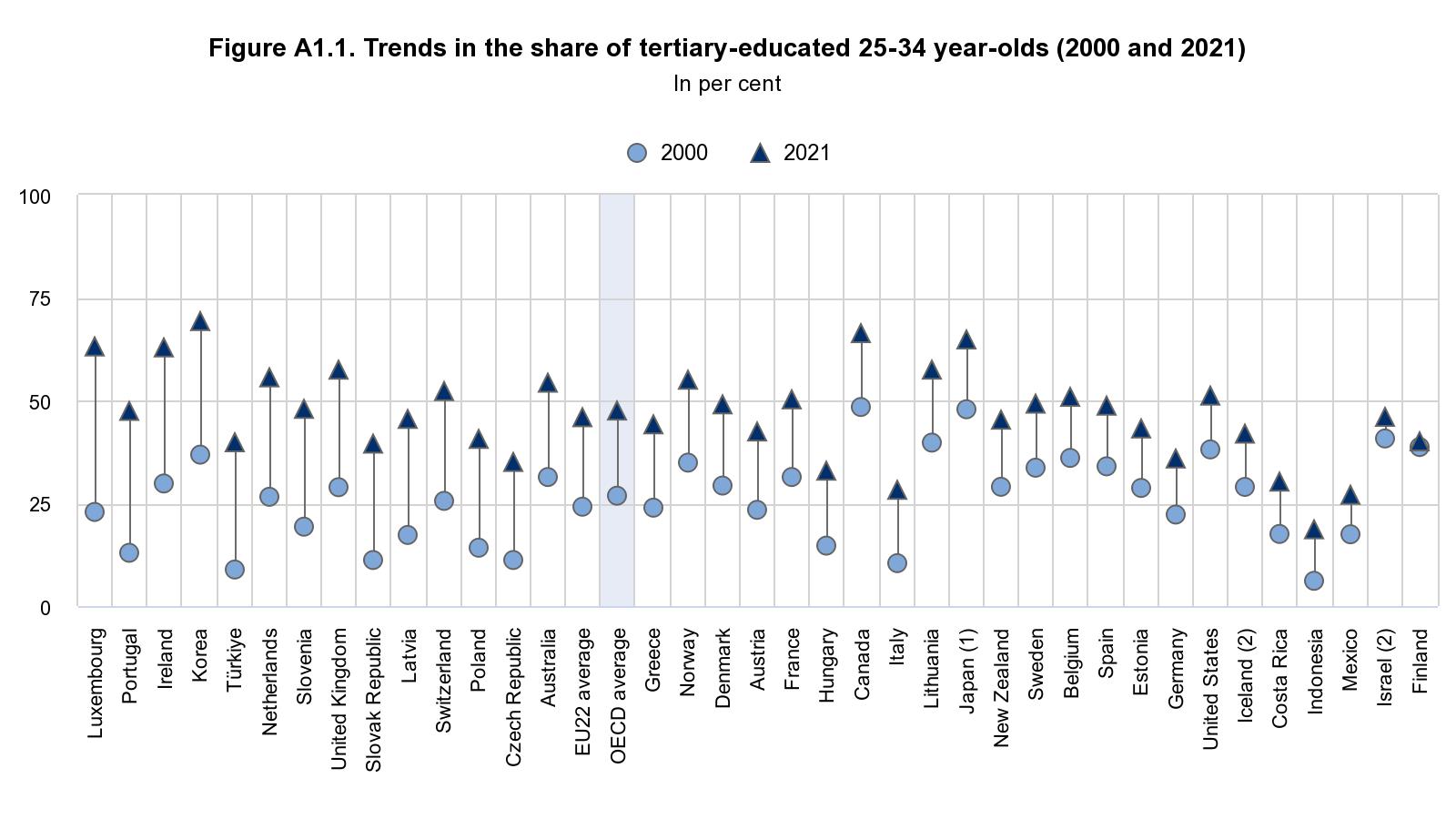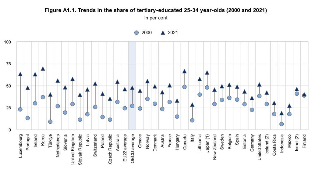 Scanning the headlines for results from OECD’s Education at a Glance: October 2022 Edition