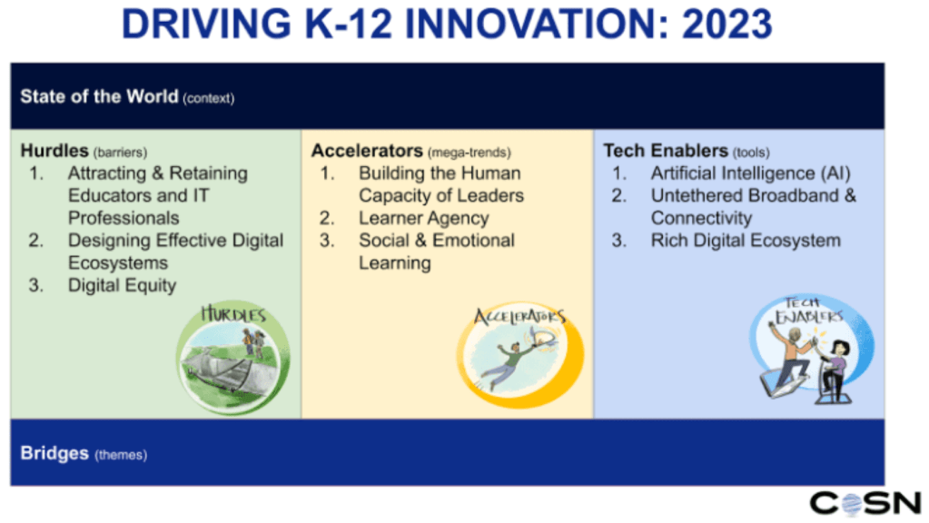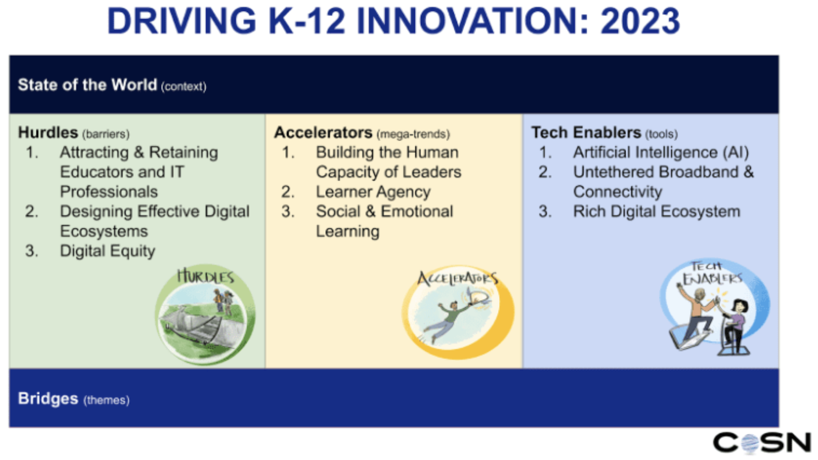 Discover the Top Hurdles, Accelerators and Tech Enablers Driving K-12 Innovation in 2023, COSN