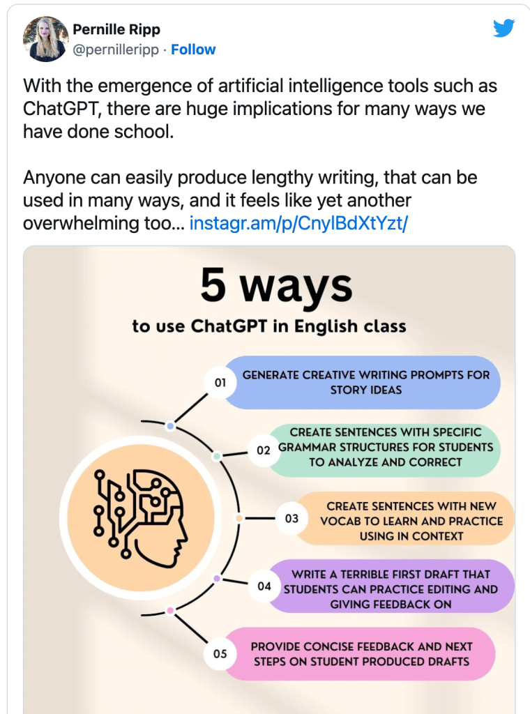 “Over one in four teachers in a recent Study.com survey say they have caught students cheating by using ChatGPT.”