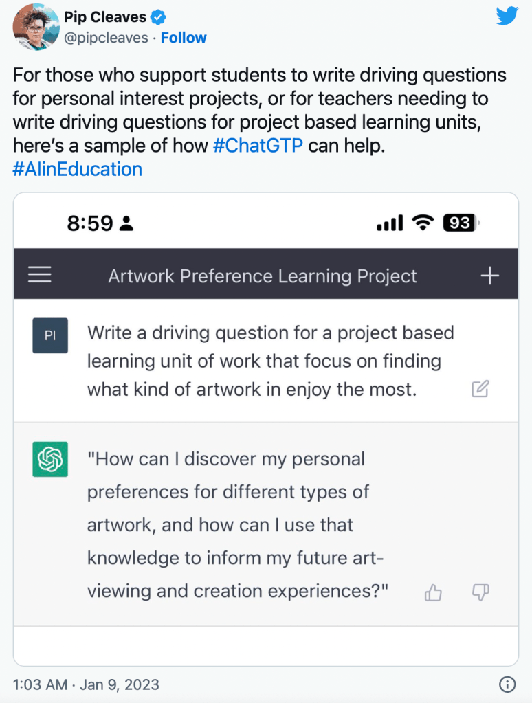 @PipCleaves shares a ChatGPT prompt for teachers and students, featured in The Guardian