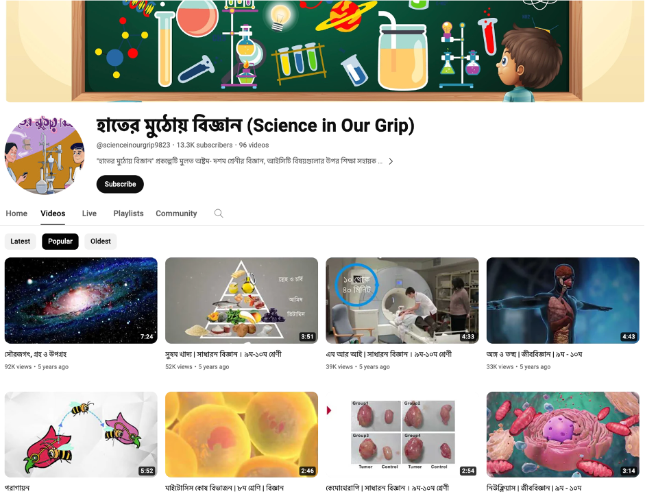 Shefatul Islam (SI): I started my education career when I was an economics student at university. At the time, I was tutoring high school students in subjects like biology, chemistry and physics to help them prepare for their national exams. In some cases, the students had trouble understanding the material because they hadn’t had any experience with it, and they didn’t have the lab facilities to explore it. For example, it was hard for many students to imagine what’s happening inside our bodies – what happens to the pancreas when it’s infected? These concepts were really abstract for the students, and they would often ask me if there were more visual ways to explain the topics. I used to go to YouTube to look up some of these things, so then I thought, “why not develop these videos in our own language?” So I reached out to some of my friends and some of my professors who were working with creative technologies and multimedia, and I started creating my own audio-visual educational content and my own YouTube channel, “Science in our grip.” I’m not managing it anymore, but the content is still very relevant because I made it like “micro-content,” not so much following the curriculum, but focusing on basic ideas from different subjects like “how do our organs work?” and “how do x-rays work?” It got quite popular and then I got an offer from the Prime Minister’s Office to submit a proposal and get some funds to expand my work. They gave me a grant for about $20,000 (USD) so I was able to develop content for all of Bangladesh. That really started my passion for education.