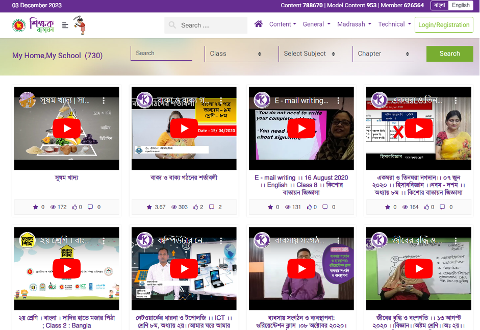 But not all teachers were ready. Not all of them had the necessary data, phones, or expertise, and after a couple of months, we saw that many students still remained untouched and unsupported. So we went through a blended process from online to also offline and we provided some assignments from the National Curriculum Textbook Board (NCTB). NCTB shortened the curriculum for that time to focus on essential skills and competencies for each subject. We developed some problems and assignments and broadcast those again on television and social media; we also sent messages to parents by SMS; and some teachers wore suits and masks to go door-to-door to find students who weren’t engaged in online activities. We did a lot of online training using our Teachers Portal platform. For that, the faculty from the Teacher Training Colleges (TTCs) in Bangladesh were our key partners. There are fourteen of these TTCs in different parts of Bangladesh. They are very respected in their communities plus high school teachers generally go to them for training, so these faculty have influence over schools and teachers in their region. We distributed responsibility to the training colleges to train teachers in their own regions on what we called “online pedagogy” for the COVID-19 pandemic.