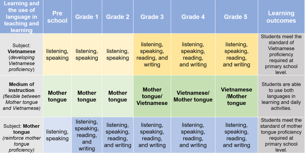 LDD: The government wants to preserve the local culture, and that’s why we also developed the bilingual teaching program funded by UNICEF. It ran for almost 10 years from about 2006 to 2015. Several million dollars were provided to develop learning and teaching materials in minority languages, and the Ministry of Education and Training (MOET) and VNIES are continuing to work to support teacher training and learning materials for bilingual education and mother tongue instruction in some provinces. But some of these languages don’t have a written form so it is not easy.