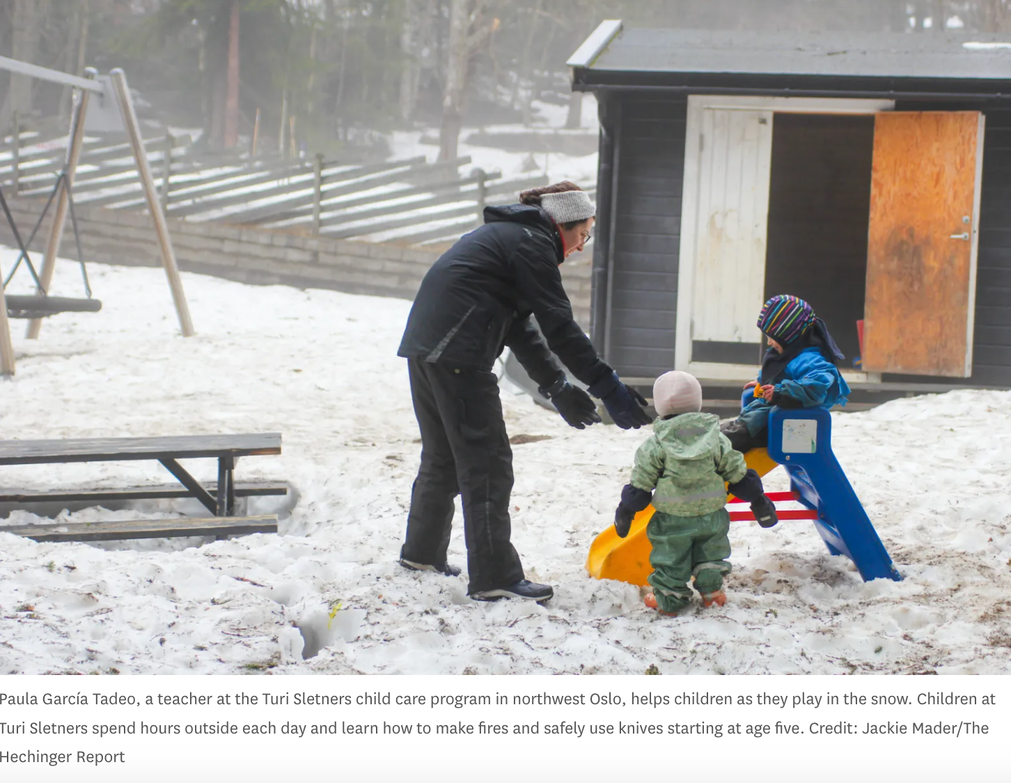 This story about Norwegian children was produced by The Hechinger Report, a nonprofit, independent news organization focused on inequality and innovation in education, with support from the Spencer Fellowship at Columbia Journalism School. Sign up for the Hechinger newsletter.