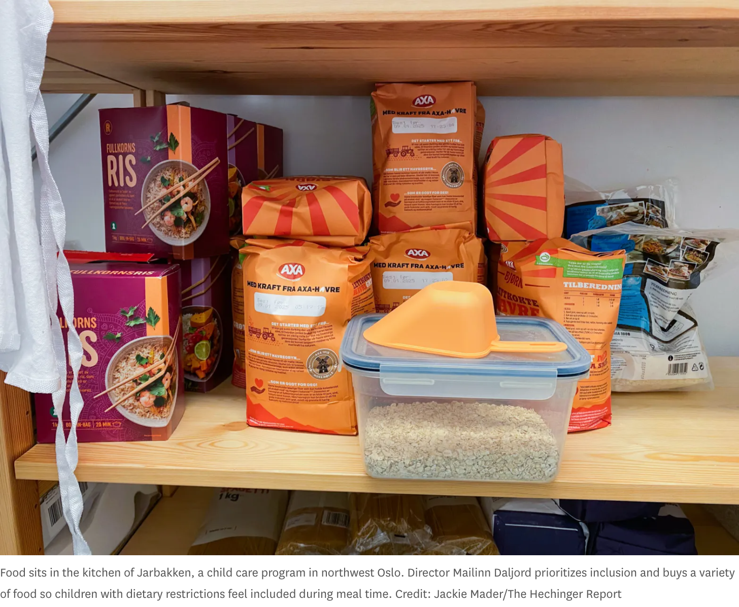 There was a clear focus on inclusion: Children with disabilities, who would often be segregated in American child care programs, were included in activities, at times with the help of a city-funded aide. Posters on some kindergarten walls showed pictures of common items or requests so children who were still learning to speak Norwegian could point to what they needed. Children were learning about the Muslim holiday Eid al-Fitr. A rack of free clothes and boots was parked inside the front lobby, with instructions for parents to take what they needed.