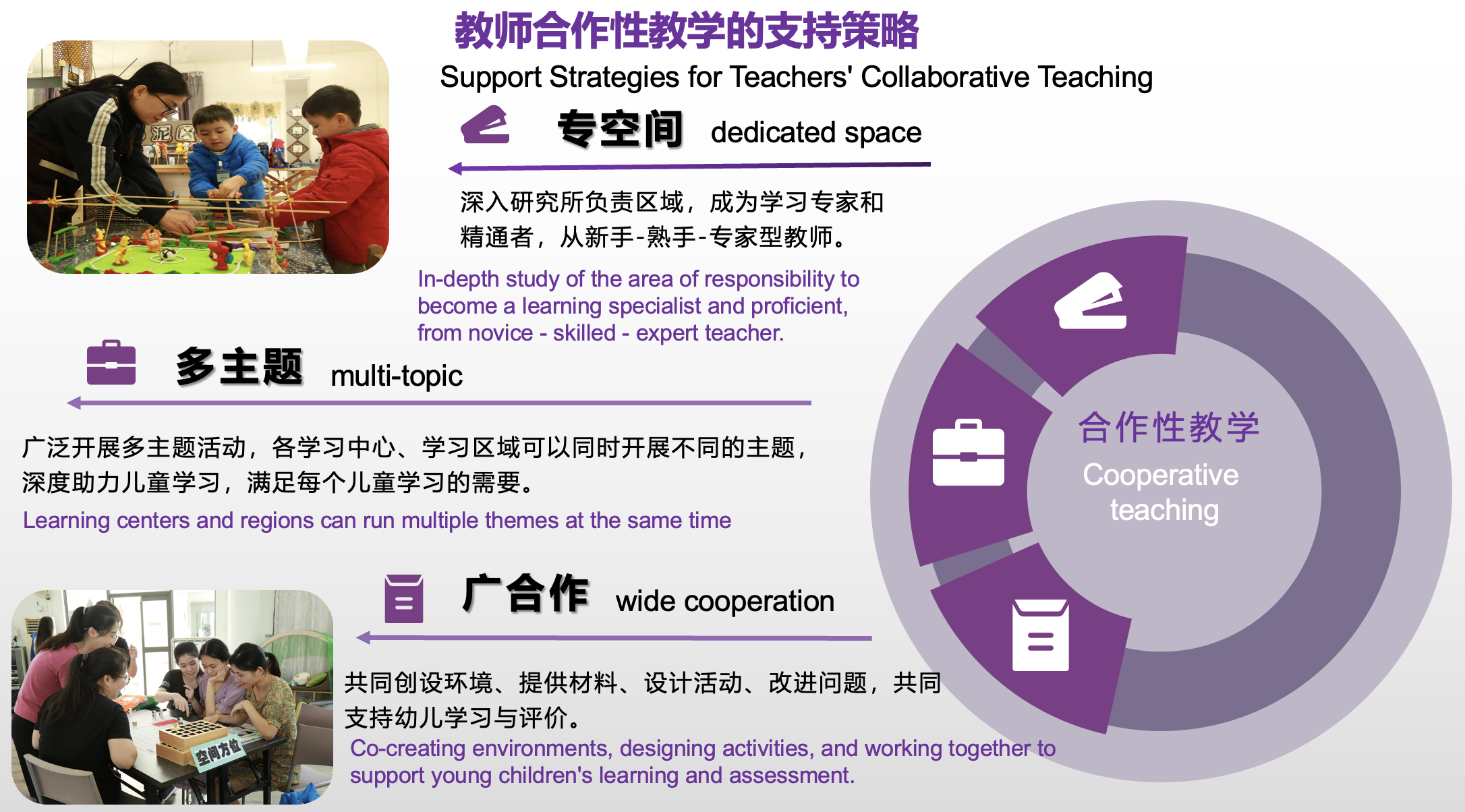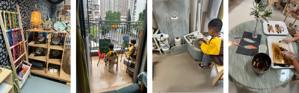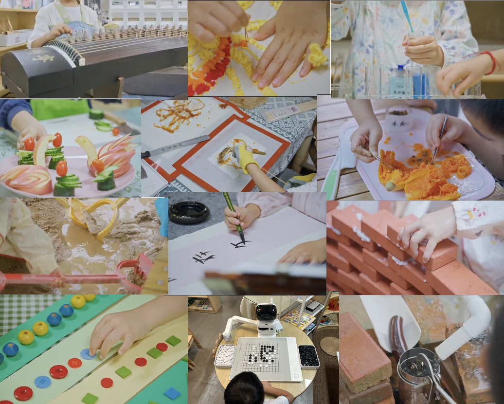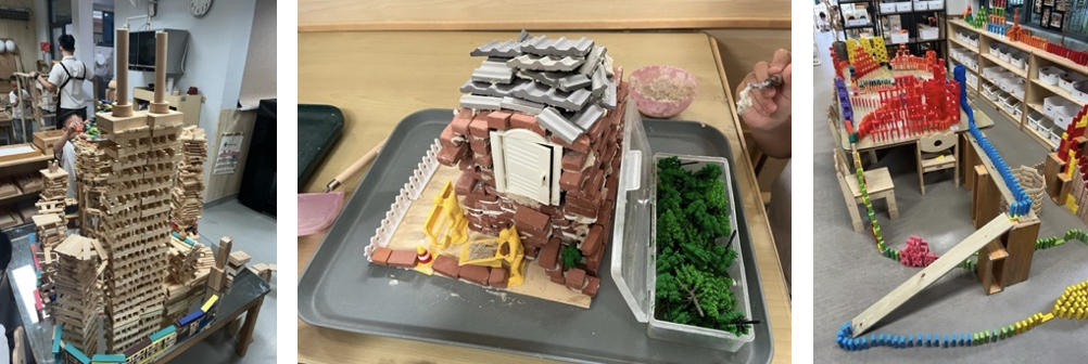 “In order to let children give full play to their autonomy, imagination and creativity, before the activities, teachers will organize children to have group discussions, introduce the areas and appreciate the works in the areas, share children’s life experiences, and let children discuss and determine the content they want to do and make work plans. Let children collect relevant materials, including books, pictures or video materials. We will also get families involved. Reading, consulting and on-site visits will be carried out at home. The daily conversation activities will help children sort out their activity ideas, encourage them to boldly realize their creative ideas, making each work full of challenges and creativity. Work is a process of continuous in-depth processing. Children’s works always exceed our imagination, bring us a lot of surprises and also make them gain a sense of satisfaction and achievement.“