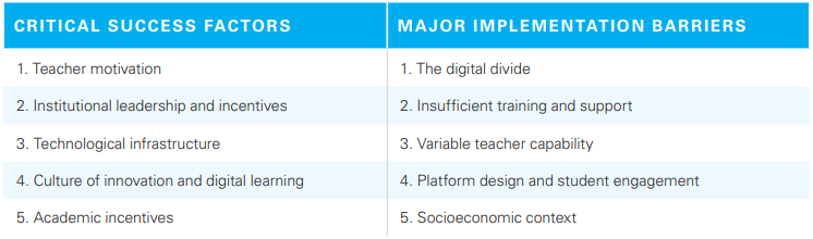 Critical success factors and major implementation barriers for digital learning