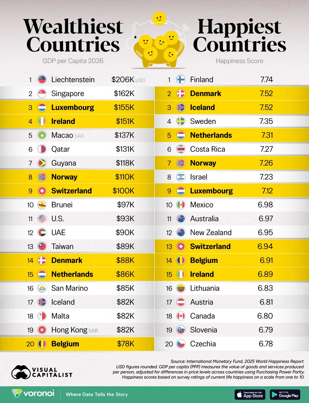Ranked: The World’s Richest Countries vs. the Happiest Countries, Visual Capitalist