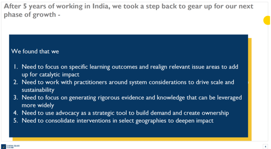 Beyond the largely school-based, academic concerns of foundational learning and increasing access to colleges and careers, four other interwoven issues – including chronic absence, mental health, nutrition and sustainability – have been receiving increasing attention in the aftermath of COVID-19 related pandemic in India. The discussion of these issues illustrate both the critical challenges as well as the kinds of initiatives and innovations that are already being pursued that can give hope for the future in India and beyond.